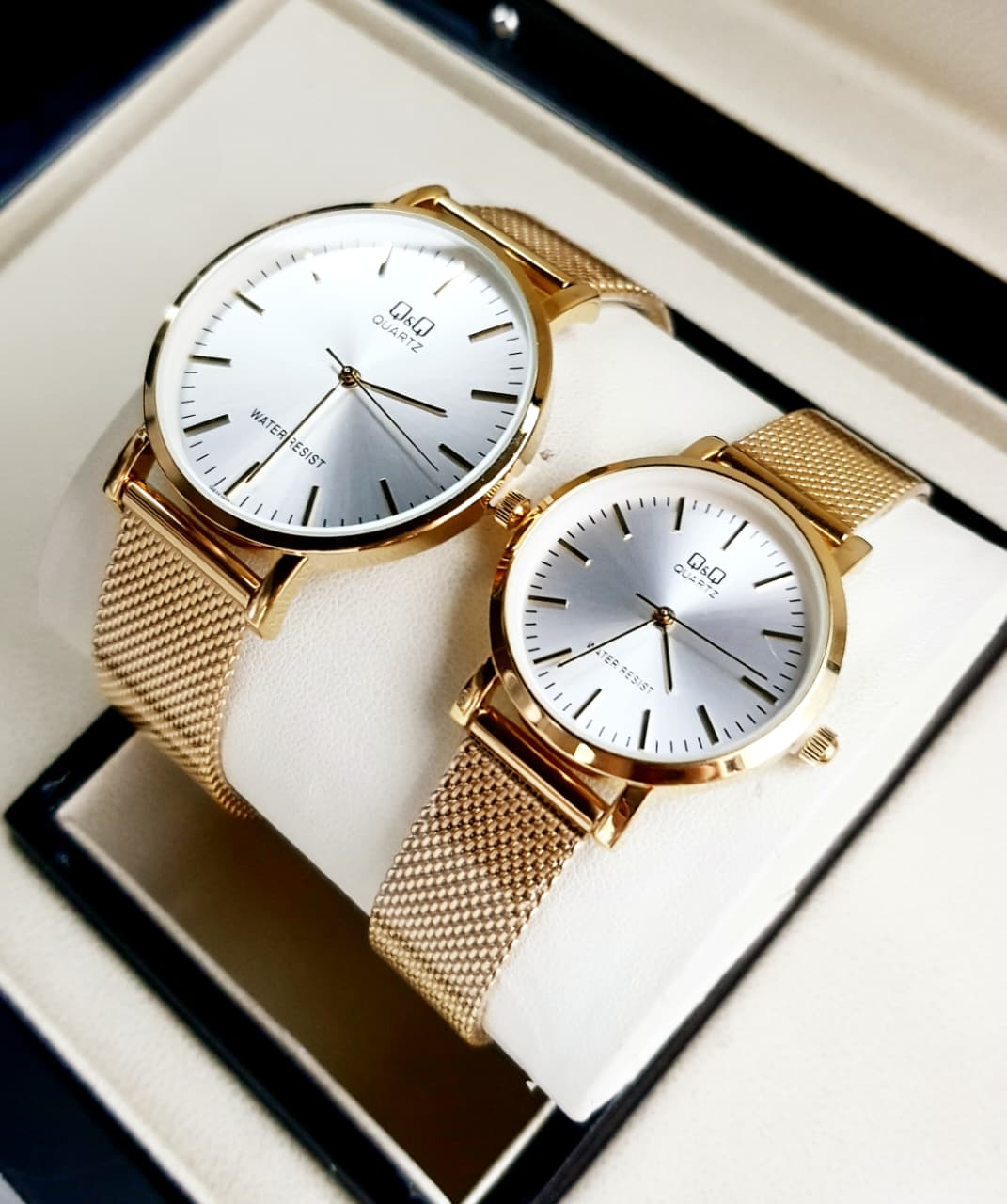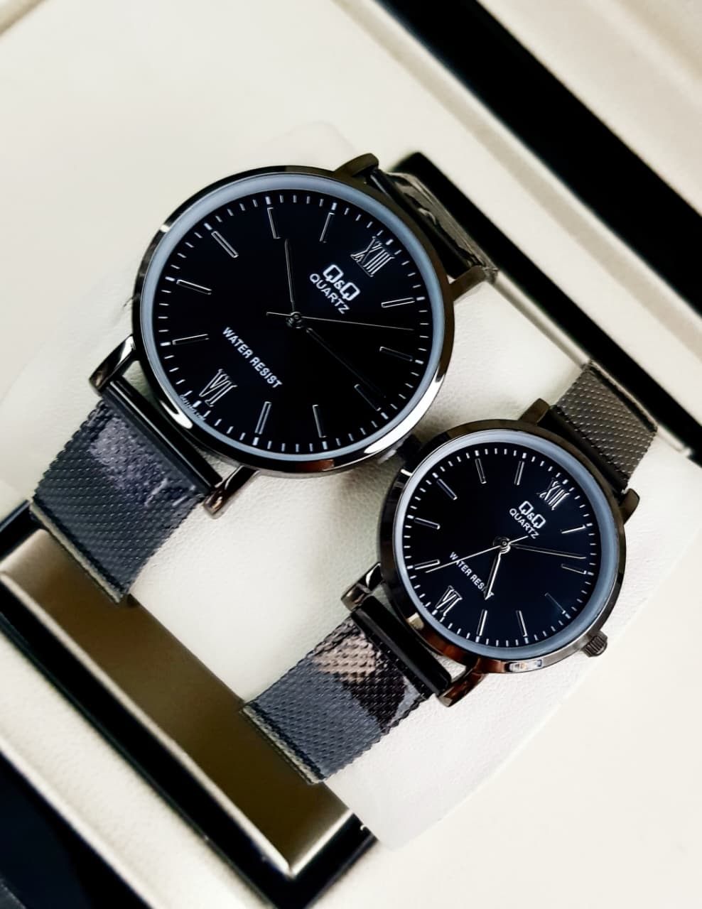 Dos relojes, un mismo ritmo. Este set de relojes de pareja Q&Q está diseñado para quienes comparten momentos, estilo y conexión. Su diseño minimalista y sofisticado los convierte en el complemento perfecto para el día a día, sin importar la ocasión.